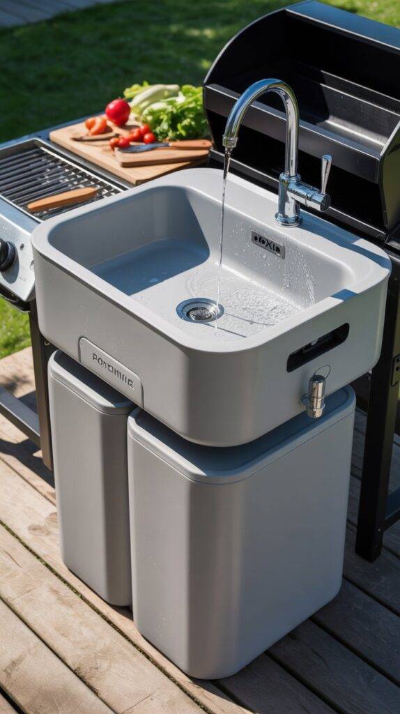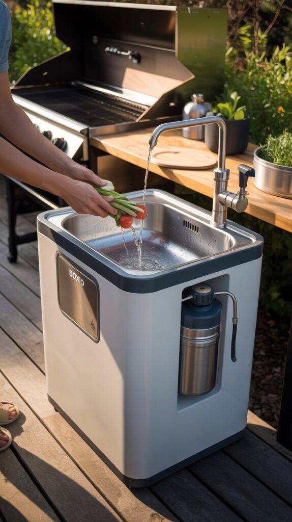Adding a sink to a small outdoor kitchen is smart, but running new water lines is a pain. The BOXIO Mobile Sink solves this beautifully. It’s a complete, portable sink that uses a simple hand pump to deliver running water on demand, with no electricity required.