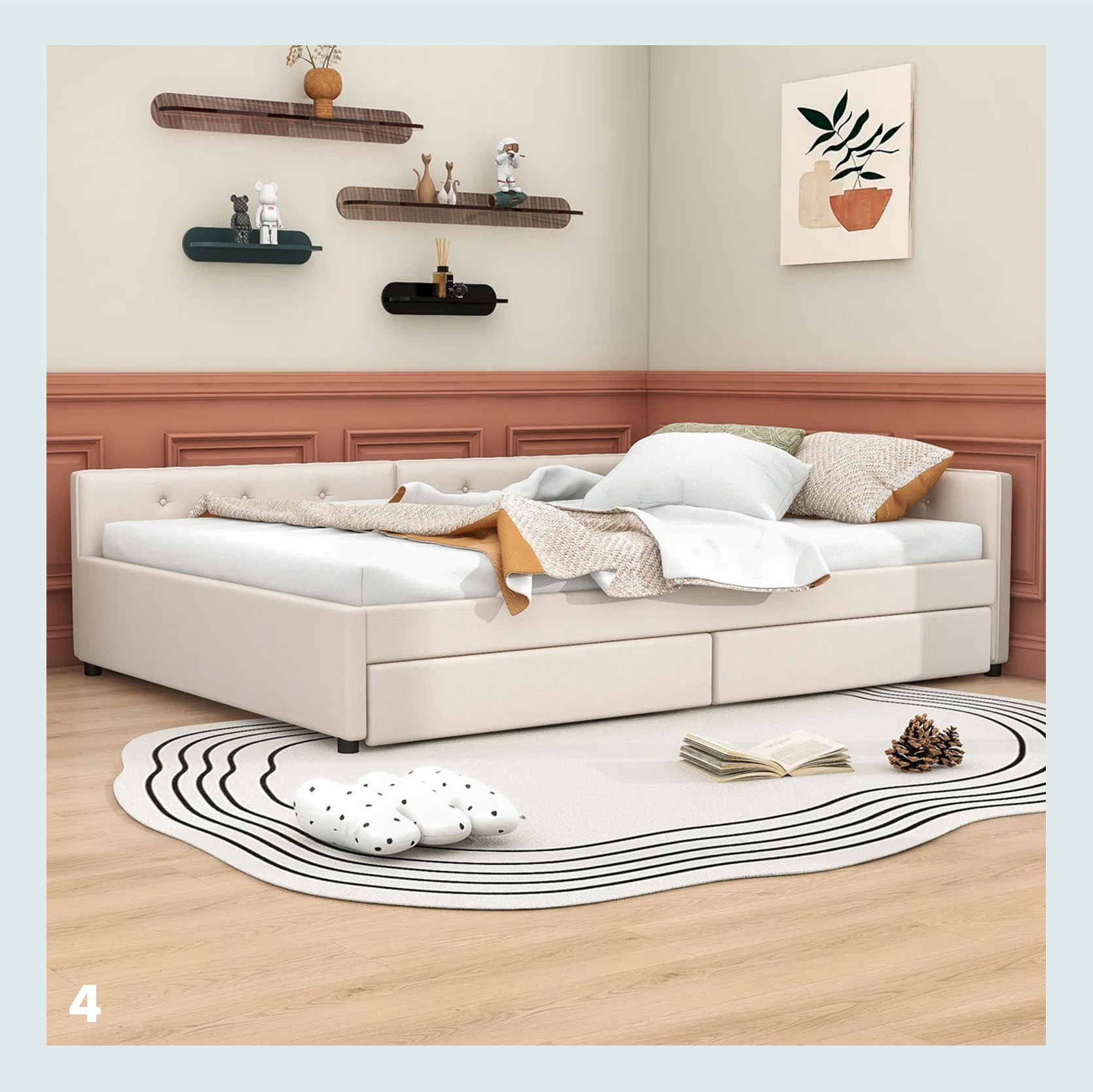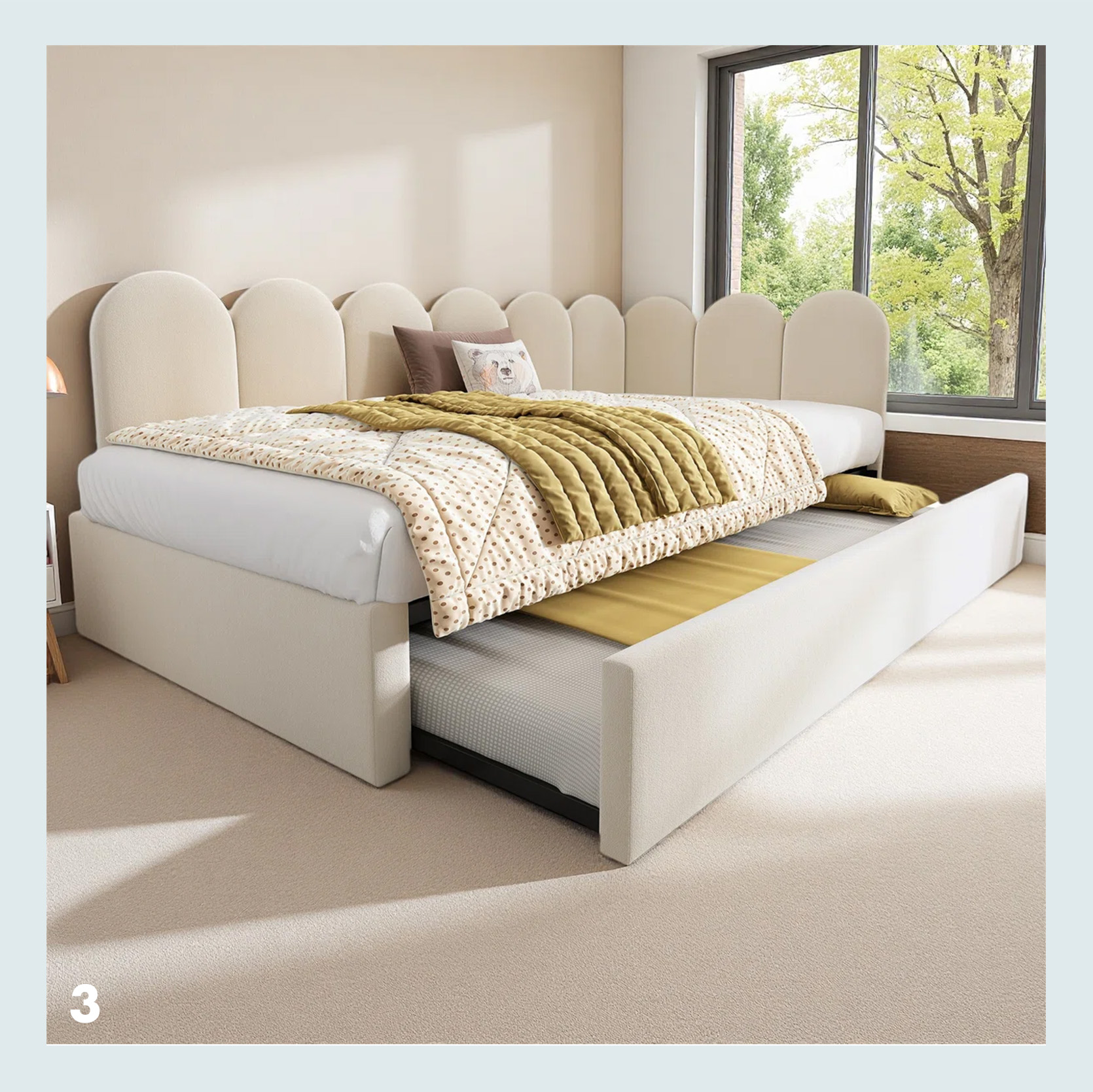 3. Scalloped Corner Bed | 4. low tufted corner bed