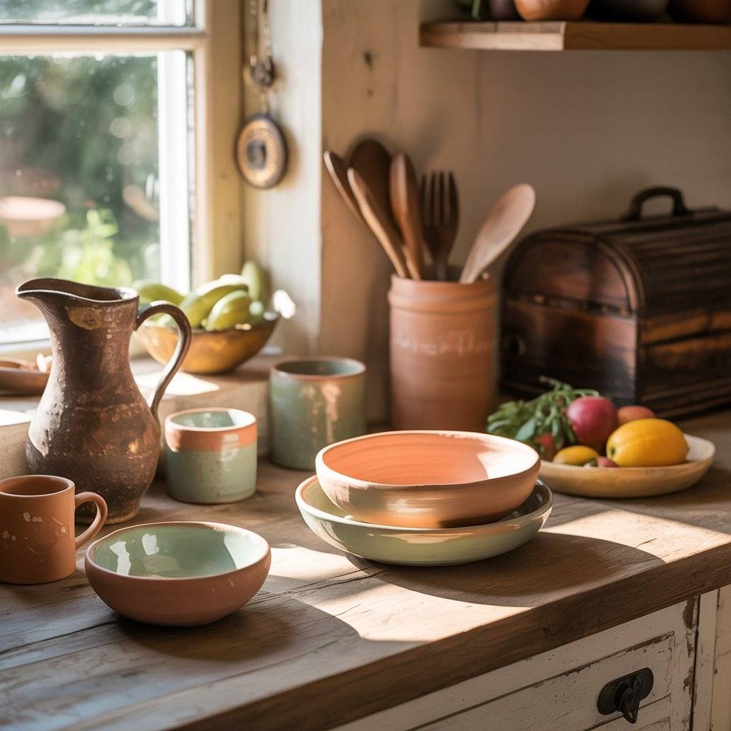 Handmade pottery also fits beautifully into a sunlit space. The slight imperfections in handmade bowls or mugs add warmth. You don’t need a full matching set. In fact, mixing shapes and textures makes it feel more relaxed.