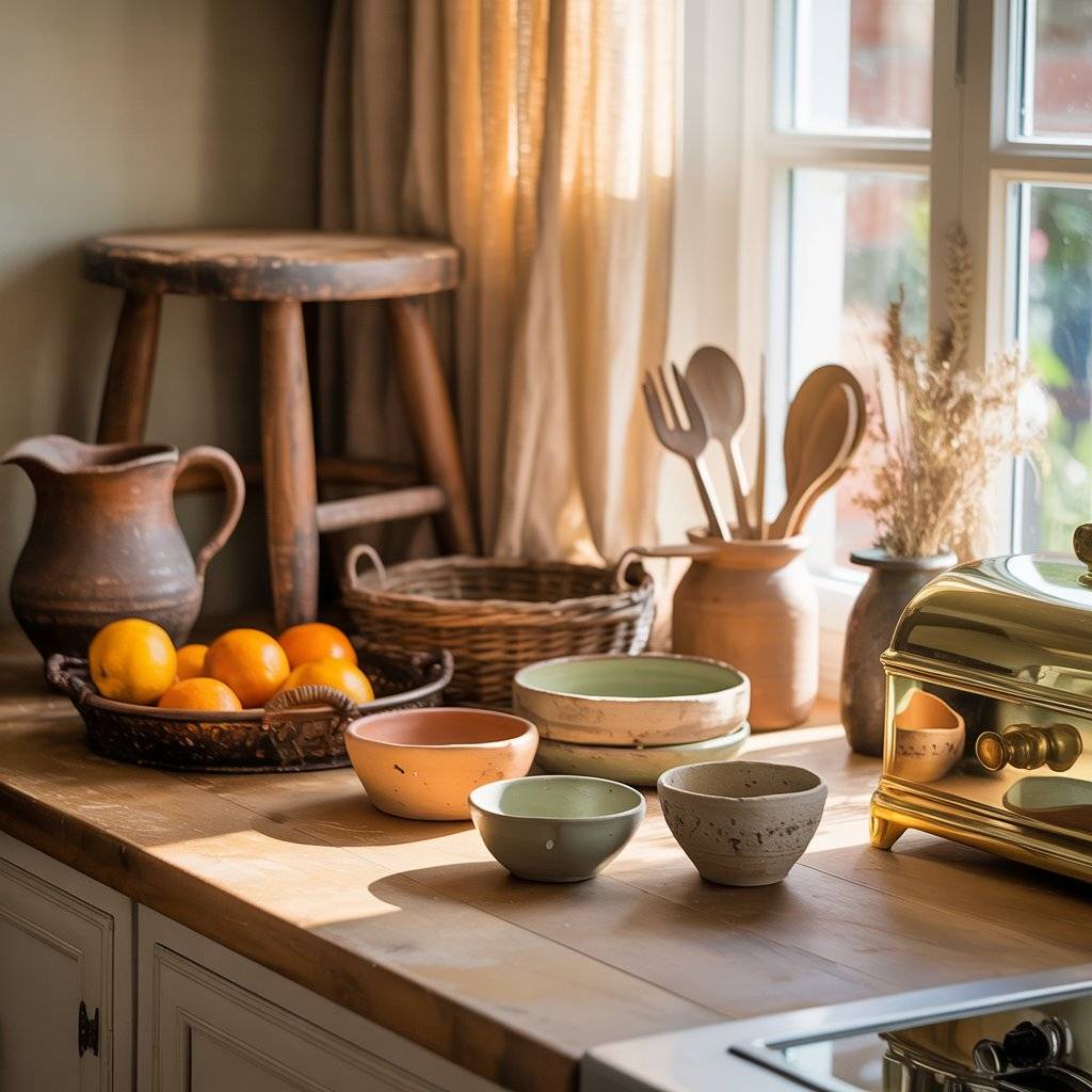 Just be selective. Too many statement pieces can look cluttered. Choose items that are both useful and meaningful. A vintage tray that actually holds fruit or a handmade jar that stores utensils keeps the design practical while adding personality.